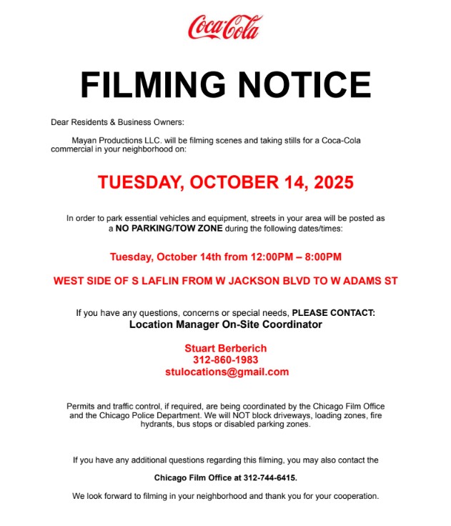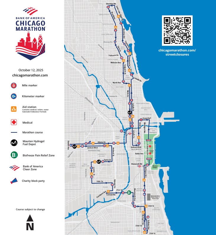 The Bank of America Chicago Marathon will also cause extensive street closures throughout the entire 34th Ward on Sunday, October 12th. Please see below for the course map and click here for a complete list of street closures. All closures will begin at 6am, and parking restrictions on impacted streets will begin at 1am on Sunday. Please familiarize yourself with the street closures to avoid getting ticketed and towed.