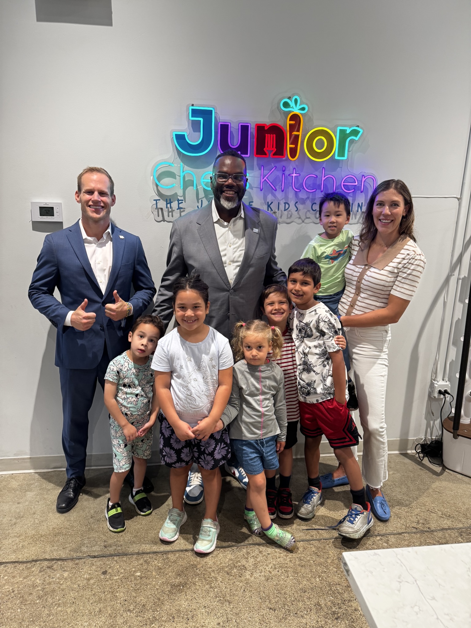 Second, we stopped at Junior Chef’s Kitchen, a learning space dedicated to teaching children cooking and nutritional skills that they can take into the rest of their lives. Notably, Junior Chef’s Kitchen was the recipient of a Community Development Grant from the Mayor’s Office in 2023, which allowed them to open, grow, and expand. The Mayor was joined by his leadership team such as Deputy Mayor of Business, Kenya Merritt, Deputy Mayor for Education and Youth and Human Services, Khari Humphries, and Deputy Commissioner for Small Business Development, Mary O'Connor. We took the opportunity to show the impact of small business grants in the 43rd Ward, and pitch for more.