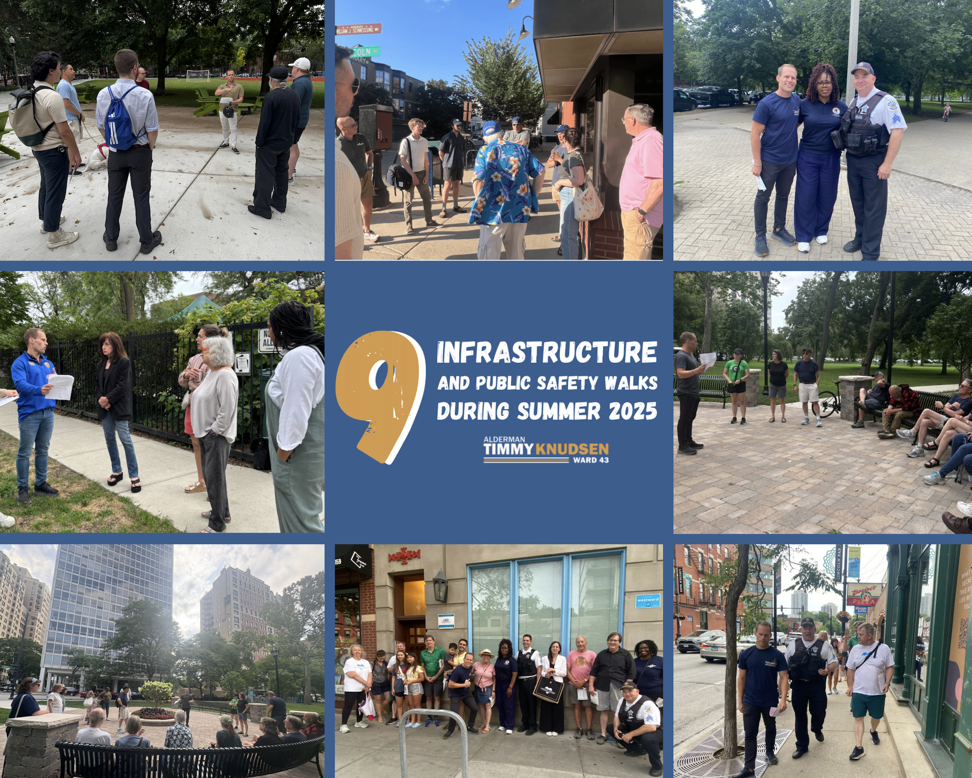 This Tuesday marked the end of our “Summer Walk Series”, which included six Infrastructure Ward Walks, and three Public Safety Walks with the 18th and 19th District Police. During these nine events, I had a wonderful time connecting with members of the community ‘after hours’ to hear directly about the issues impacting us most. Thank you to all community members who joined a walk this summer!
