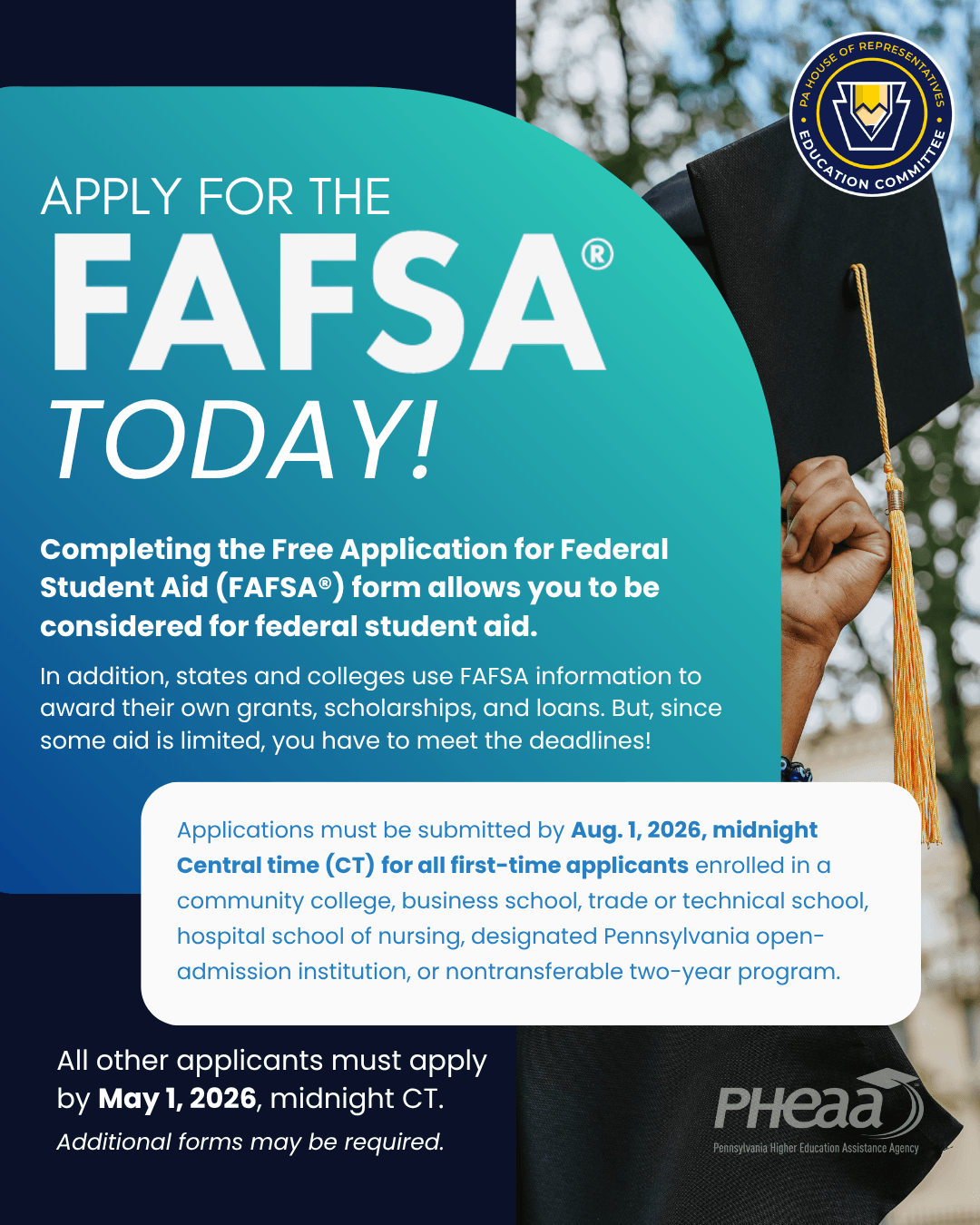 PHEAA is reminding students and families to complete the Free Application for Federal Student Aid form.
