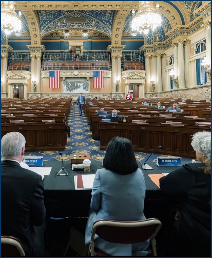 Image: Photo of me speaking to the presidents of Penn State, Temple, Pitt and Lincoln University during last week's budget hearing.