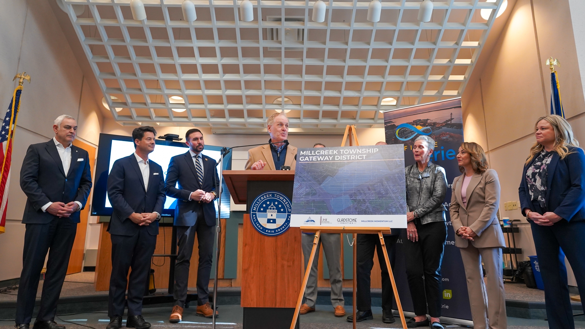 Earlier today, the Millcreek Township General Authority (MTGA) voted to approve a pre-development agreement with Millcreek Momentum, LLC for the redevelopment of the Authority’s Gateway District properties at West 8th Street and Peninsula Drive. The approval marks the beginning of a pre-development phase that will allow the developer and MTGA to conduct due diligence, refine project design, evaluate financial and regulatory considerations, and negotiate the terms of a final development agreement.